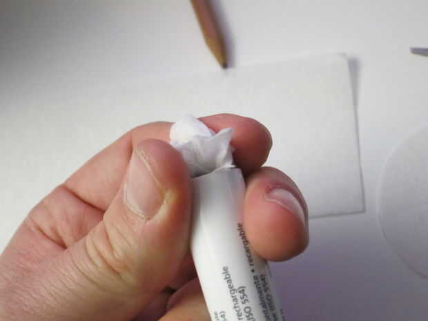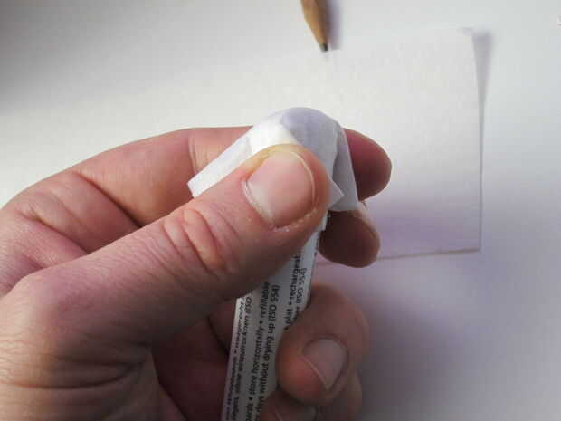 5 - forma una bola con la parte cuadrada del borrador de la hoja que wat cortado en el paso 4. Trate de ajustar su circunferencia a del lápiz.