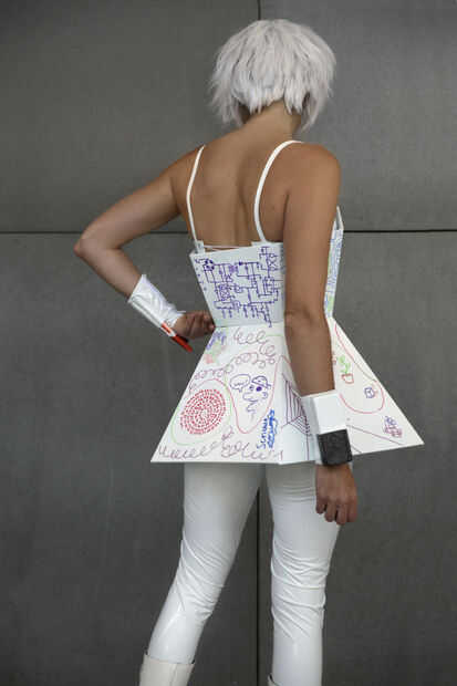 Crédito para que esta idea del traje va a push_reset, que llevaba un vestido que ella había hecho para trabajar que fue revestido en pintura de pizarra. Inmediatamente pensé que sería divertido para usar el mismo concepto pero como una pizarra y aquí es! También un gran agradecimiento a audreyobscura por las fotos impresionantes.