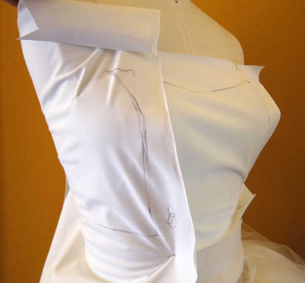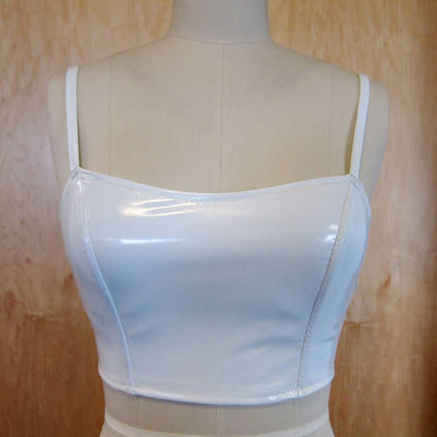 Como el cuerpo se mueve mucho, necesitaba un top para usar por debajo así. Me había cubierto un top de cultivo básico usando una forma de vestido y decidió tener una ata para arriba detrás, que quita mucho el ajuste del patrón que se requería con el pantalón.
