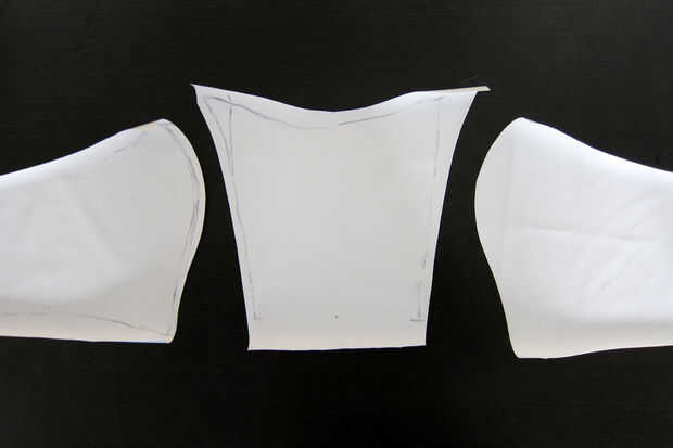 Construcción era sencilla - cosen las tres piezas junto con un margen de costura de media pulgada, entonces dobla el margen de costura hacia afuera y cosido un canal hacia el exterior de la costura lo suficientemente amplia como para insertar algunos deshuesado. Yo estaba fuera de deshuesado, usé ataduras de cremallera. Una vez en, plegar la parte superior e inferior y terminar los bordes con una puntada en zig zag (necesario para el estiramiento).