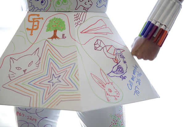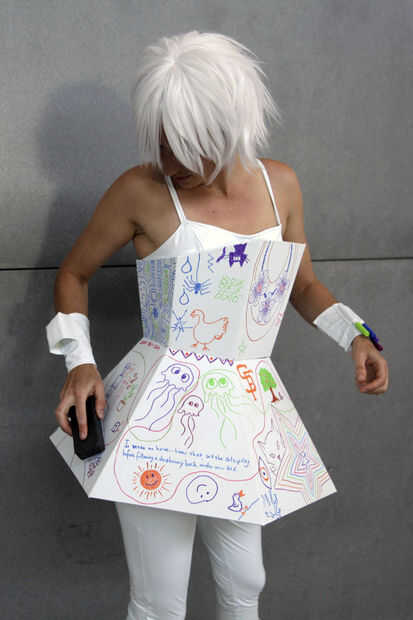Porque hice la parte superior e inferior del vestido por separado para facilitar su almacenamiento, las piezas necesitan ser grabado juntos a lo largo de la cintura para quedarse como un solo elemento. Usted querrá bien conducto grabado juntos las dos mitades antes de colocarlo para una mirada perfecta.