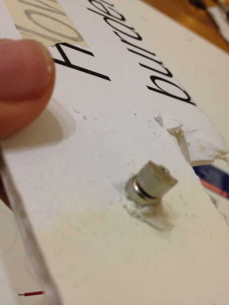 Conectar los motores funciona un poco diferente que el LED de conexión. El LED puede tener piernas que se adhieren al suelo porque no necesitan moverse, sino porque los motores van a estar en movimiento que el círculo superior puede no conectarse a cualquier cosa, menos la parte superior del motor vibrante que está libre girar, pero debe haber una base para el motor vibrante para sentarse para que el motor permanece en lugar mientras que sólo la base hace girar. He creado una caja de espuma la base que sostiene la parte inferior del motor y se sienta en el suelo mientras que la parte superior está conectada con el disco circular. Sin embargo, antes de pegar la parte superior del motor al disco de asegurarse que tienes pegado en el centro de modo que el motor no está girando del centro sino en el lugar correcto.