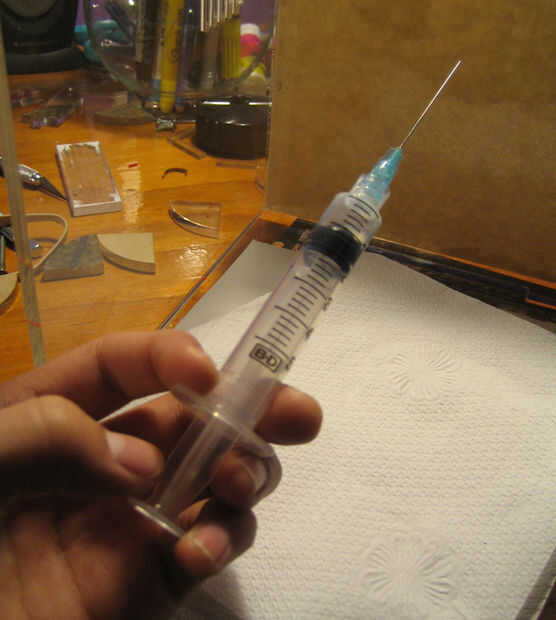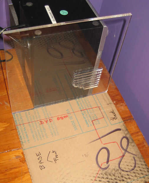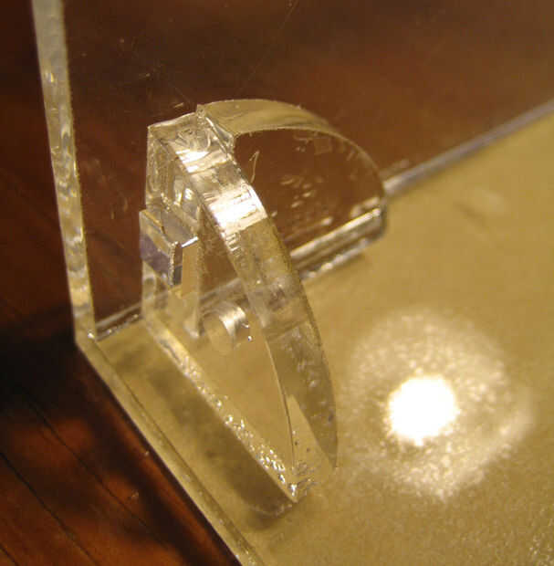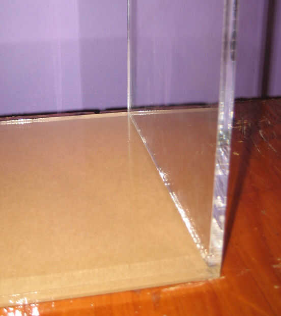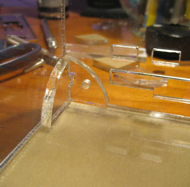 después de esto seguí con la base y los paneles de izquierda / derecho. la mejor manera de hacerlo es colocando las piezas juntas y aplicar el soldar con autógena-en 3 alrededor de los bordes de la conexión como en la foto de abajo. de esta manera que el líquido a ser succionado de la brecha entre las dos piezas de plexiglás y con algunos agrega presión y un tiempo de espera de 3 minutos tendrás un vínculo sólido.
