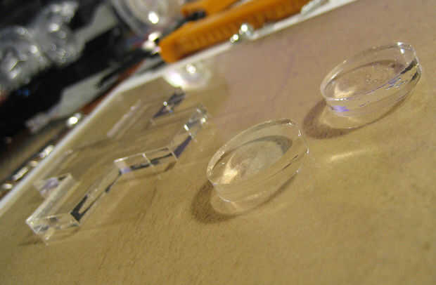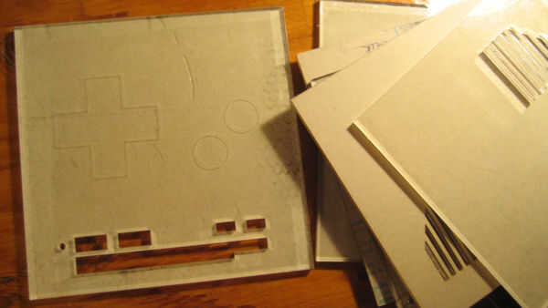 a continuación tome el extra d-pad y botón formas y pegar en la placa frontal siguiendo las líneas grabadas y también coloque otro dos pedazos de plexi rectangular al panel base; Esto es donde la unidad de DVD se reclinará sobre. Ahora que todo se pega y en su lugar es hora de que una capa de pintura.