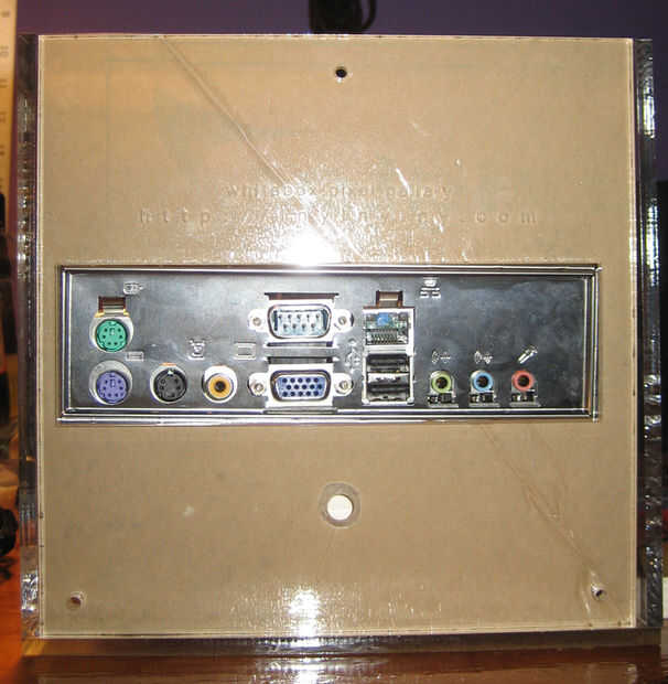 luego para colocar la placa base coloca cuatro esquinas alrededor del interior del cubo a la misma altura; la altura es igual a la altura entre la base y el agujero en la placa trasera, donde sobresalen los conectores de la placa base. cada vértice es cuidadosamente colocado y marcado con un bolígrafo según donde los tornillos están disponibles en la placa base y luego perforaron.