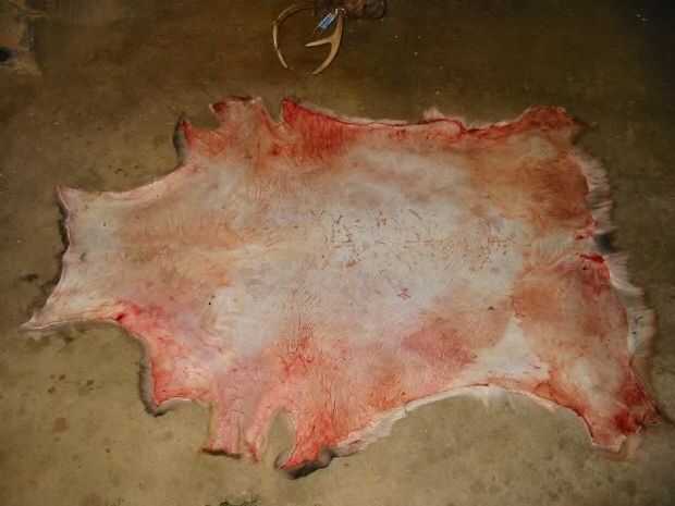 La receta para completar la preservación (decapado) del cabo requiere 8 libras de sal, 1 libra de alumbre y 1 libra de 20 Mule Team Borax y un envase que contiene 5 galones de líquido, utilicé una bolsa de plástico. Poner 3 galones de agua en el recipiente y disolver la sal, el alumbre y el bórax en 1 galón de agua hirviendo en un recipiente separado. Vierte la 1 galón en los 3 galones, revolviendo, luego deje que se enfríe. Sumergir totalmente la piel en el líquido.