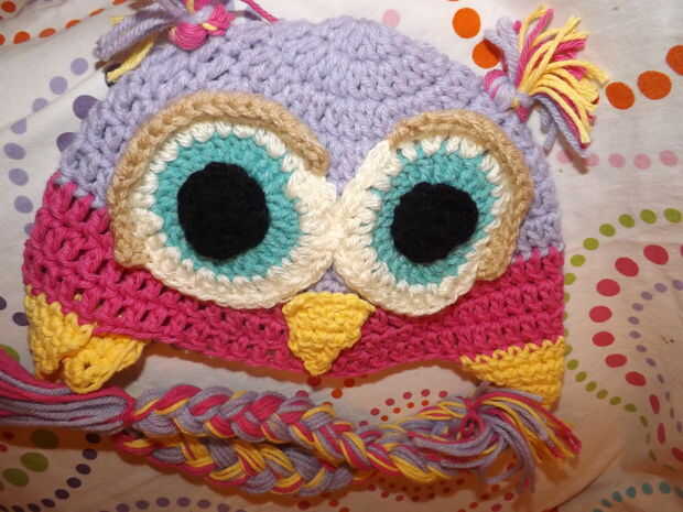 Básicamente, el búho se hace con 7 colores de hilado. (a menos que el cuerpo con diferentes colores o un color sólido.) Usé un gancho de crochet de tamaño 5 y un método SUPER sencillo que trabaja para hacer el cuerpo del gorro y los ojos. y utilicé el mismo método para hacer las orejeras y el pico (nariz)