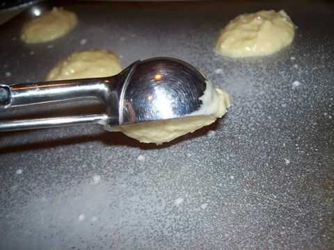 Usando una cuchara para galletas, gota 2 pulgadas aparte en galletas enmantecadas y hornear durante 7-9 minutos o hasta que pasteles primavera cuando toca. (Mi cucharada de galleta es de 1-1/4 oz o casi lo mismo que una cucharada.) Retire con una espátula y refresqúese en los estantes.