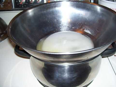 Si no tienes una caldera doble, se pueden sustituir una bandeja resistente y taza de metal (ver foto).