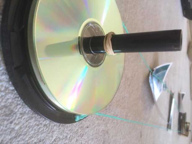Una manera super cool mostrar fotos o notas con un viejo motor de helicóptero RC y el transmisor para hacerlos girar.