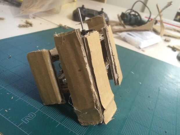 El siguiente paso es pegar todas las piezas hasta un pedazo de cartón. al pegar abajo hacen que es el interruptor para encender y apagar en el exterior y se puede acceder fácilmente al puerto de carga. Lo hice dejando un lado abierto.