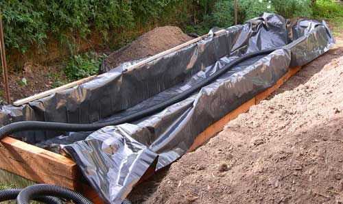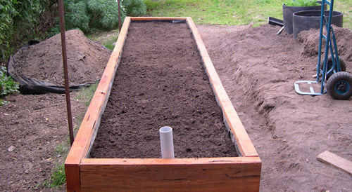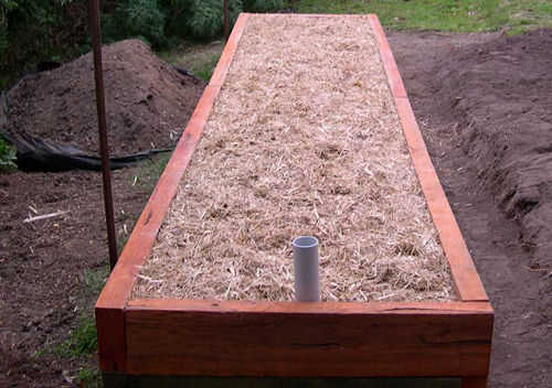 "La cama gusano drenaje es un sistema altamente productivo que no sólo produce más alimentos de agua limitada, pero también recicla residuos orgánicos para proporcionar nutrientes y captura de carbono en planta. La esencia es formar un depósito subterráneo de agua o estanque contenida en un envase impermeable o trazador de líneas debajo de la superficie del suelo. Las plantas son productivas porque tienen un suministro continuo de agua y nutrientes". Colin Austin