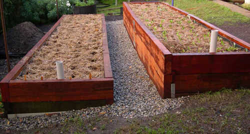 Agua no se evapora en la parte inferior de la cama de drenaje 'absorbe' hasta las raíces y el suelo superior permanece suave, bajo la. Ahora, sólo necesitaremos agua una vez por semana en verano y menos durante el resto del año.