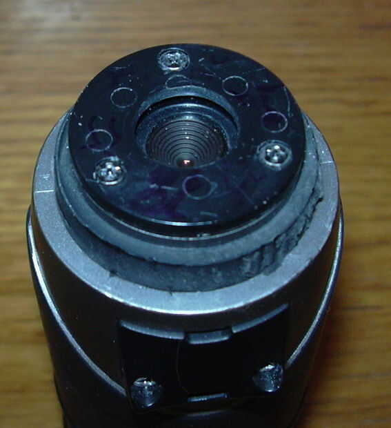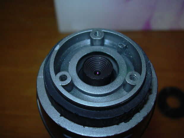 Cuando se quita la tapa de goma verás una placa redonda con la ventana cuadrada cam.