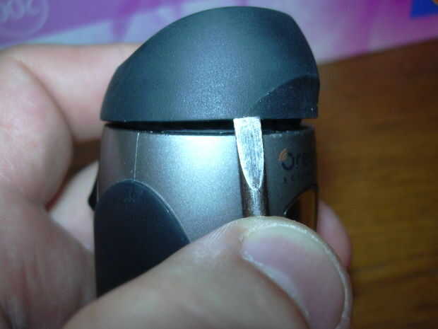 luego tomar un robusto destornillador y palanca suelta el tapón de goma frontales de la ATC2K apuñalando entre y debajo del lado de la tapa de goma.