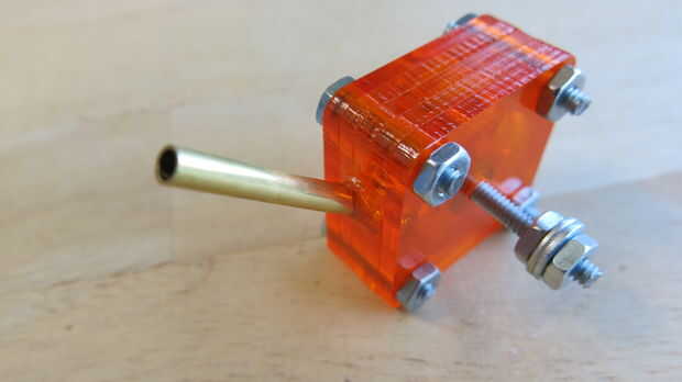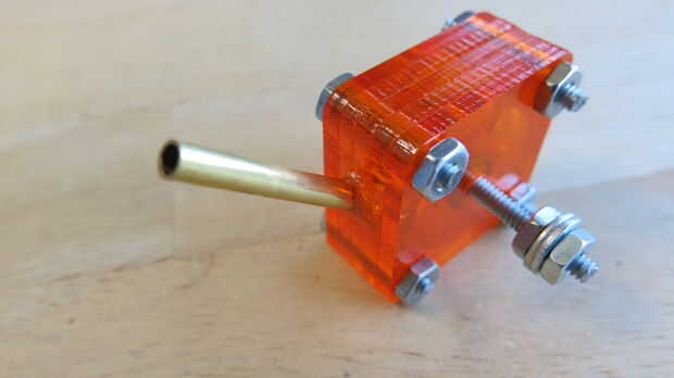 Kleiner Ein Teil von 1/8 "Messing Rohr geschnitten wurde mit einem Dremel, und der Lufteinlass wurde verbreitert, damit sie en turbina der im Inneren geklebt werden, nachdem es wurde miteinander verschraubt.