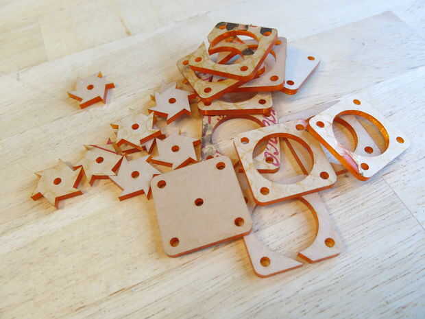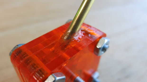 Ungefähr 1.5 "segmento 6-32 Gewindestange geschnitten wurden mit einem Dremel mit einer Trennscheibe. Diese wurden en die Löcher un den Ecken setzen, und un der Stelle mit gleicher Nüsse. Tintas formas un den Ecken wurden etwas breiter mit Handbohrer für eine einfache montaje.