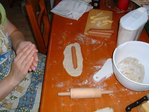 Wiener en un bollo (5 / 6 paso)