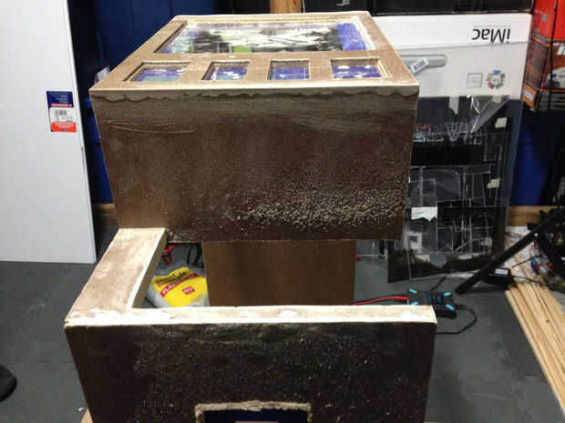Para finalizar el condominio pequeño solía relleno de madera rellene los bordes y las partes que no se transparente. Después de secada la masilla tomé un pedazo de papel de lija para hacer todo perfecto. En las ventanas había un boquete pequeño así que yo también los llenó y les arena.