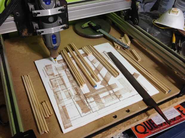 Para la construcción de las ventanas que no quiero el window(Plexi) para moverse para que lo que terminé haciendo fue usar la tabla mini Sierra para cortar el marco y después de cortar el marco corté una ranura de la parte interior del marco. Lo hice mediante la construcción de una parada que se corte una ranura de la espiga un poco a la vez. Mientras estuve cortando las ranuras en la estructura de la ventana he intentado ejecutar la madera hacia atrás y no era una buena idea, pulgar derecho en la hoja. Eso no impidió que me aunque continué cortando los marcos después de que hice lo que me gusta la llamada el protector de pulgar 5000. Utilizarlo para pasar las clavijas sobre la hoja así que no tengo un dedo sobre la hoja cada vez. (Si has hecho antes de ocurrido el accidente) Después se cortaron todos los marcos solía mi shapeoko molino las ventanas un plexi un poco más grande que el tamaño de la ventana así que sentaba en las ranuras. Después de alguna presentación para obtener el plexi que caben perfecto solía pegamento sosténgalos juntos antes de que fueran en las paredes. Luego me mudé a la creación de las escaleras.