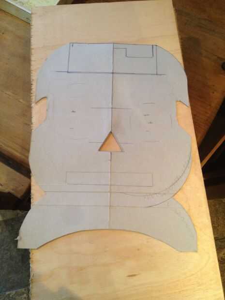Dibujar la forma de su cráneo (o de otra forma si quieres probar algo diferente) sobre un cartón. Ahora trazar esta sobre la hoja de madera contrachapada.