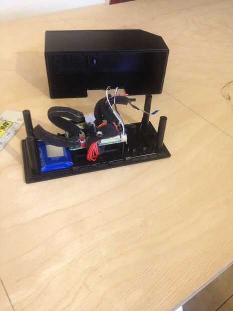 Encolar la Junta y la batería en su lugar. Pegamento de madera hará muy bien. Tenga en cuenta que la bateria dura alrededor de 2 horas en mayores volúmenes y 3 horas en los niveles inferiores. La batería de 3.7v y podría daisy encadenado con otras para extender el tiempo de reproducción.