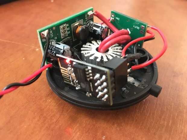 Como se puede ver en la foto he intentado todo lo coloque en el exterior de manera que era lo más lejos posible lejos del centro por el calor del disipador de calor potencialmente. Encontré hotglue en las partes más fáciles primero y luego de la soldadura de las conexiones, de esta manera que pude cortar los cables a la longitud correcta como el espacio es limitado. Soldar todas las conexiones directamente excepto el chip ESP como quisiera poder quitar el tablero y si es necesario.