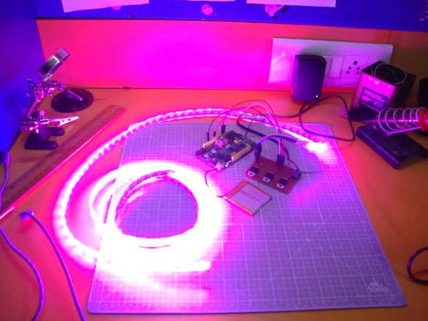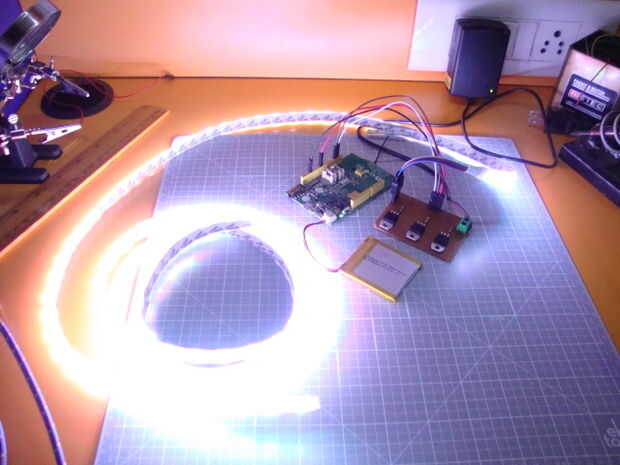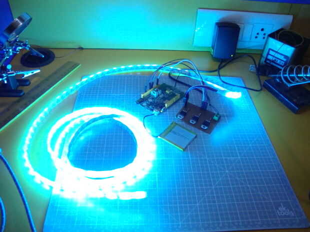 El proyecto utiliza el Mediatek Linkit uno como la base que tenía WiFi incorporado por lo que no necesita ningún protectores externos o módulos excepto uno que se necesitarían para alimentar el LED tiras que requieren una corriente de Linkit uno puede proporcionar una salida más alta.