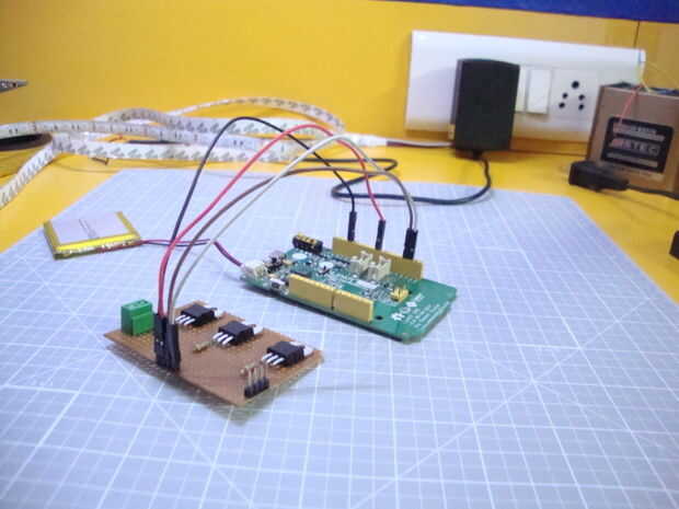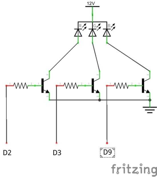 Este Instructable cubre el montaje de un circuito capaz de ing de PWM (modulación de anchura de pulso) una tira de LED RGB 12v 9 y programación un Arduino para desplazarse a través de una gama de colores. Discutir cómo montar un transistor a un disip