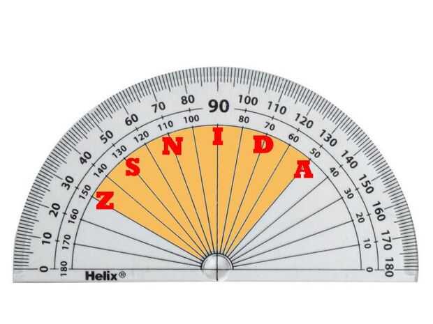 Así, A sería 52 grados, B 56 grados, C es 60 grados, etc, etc, hasta Z que sería 152 grados.