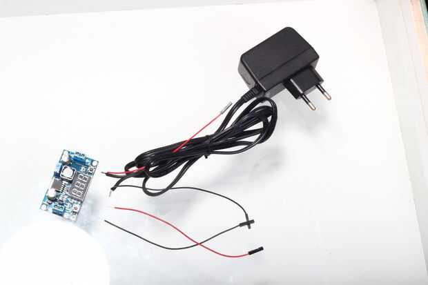 - Llevar adaptador de corriente y cortar el extremo del conector. Pele los extremos y unirlos con alambres de puente negro (a negativo) y red(to positive) en polaridad. Utilice un multímetro para comprobar los extremos positivos y negativos. Los extremos abiertos de la soldadura.
