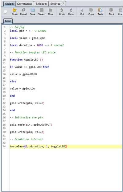 A continuación se encuentra el código debemos escribir en el software ESPlorer: