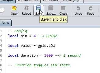 Teniendo los pasos anteriores parásitos, guardamos el código con el nombre init.lua y termine se cargará el código a nuestro dispositivo. Le damos un reset y comenzará a parpadear el LED tiene la tarjeta.