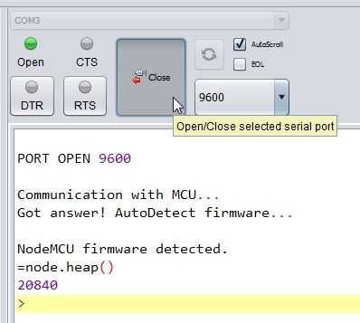 Debemos seleccionar el puerto COM correspondiente y presionamos "Abrir".