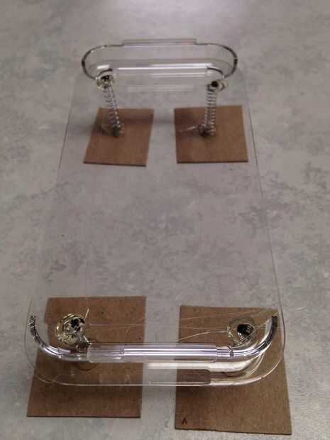 2.) después de que el pegamento se seca, el conjunto el plástico encima de los resortes y marca donde cada primavera, como guía para pegar.