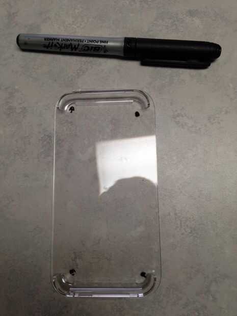 Hombre 3.) Asegúrese que el pegamento caliente es lo suficientemente caliente como para que no seca inmediatamente. Poner una cantidad del tamaño de un guisante de pegamento en cada marca de guía y fijar el plástico encima de los muelles. Deje que el pegamento secando.