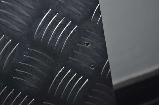 Utilizamos una placa de la banda de rodadura de aluminio de 1, 5mm de grosor. Los peldaños dan agarre al usuario a mantenerse firme, la placa sólo tiene una altura de 1, 5mm. De lo contrario esto sería peligroso para tropezar y caer.