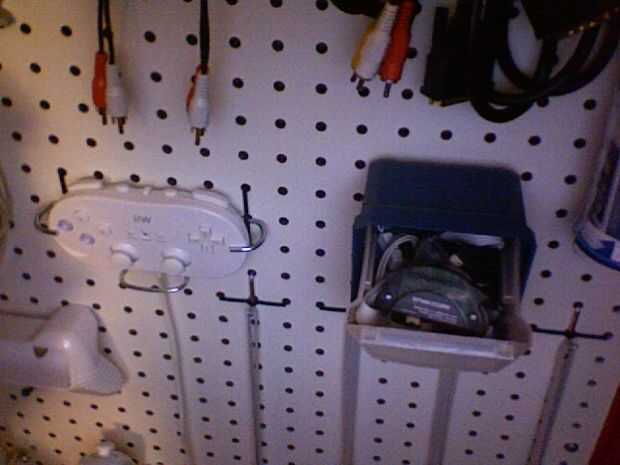 no hay mucho en el camino de instrucción como el montaje de un pegboard y estructura bastante fácil y sin ninguna duda han sido cubiertos en instructables otros grandes. Por otro lado mi TOC y es necesitan organizarse y tener todo en su lugar llevó a esta creación, mi Rack de juego Wii. Épica victoria que digo, epic win.