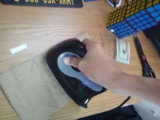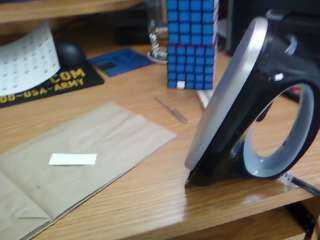 5) una vez que el hierro es calentado toma y presione hacia abajo en el tablero con alrededor de 20 libras de fuerza durante 20 segundos. (imagen 5)