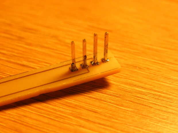 5) aquí viene al tipo de dificultad. la soldadura de la parte inferior del perno y tratar de mantenerlo relativamente rectas, o bien se woulnt caber en el arduino. Debe hacerlo porque tenemos un pcb doble cara.
