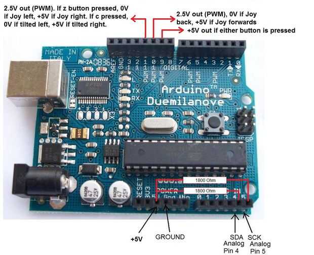 9 Pin digital: salidas + 5V cuando se presiona cualquiera de los botones del final. Esto puede usarse como una señal de control de marcha/parada. Si controla un vehículo robot o similar, a continuación, dejando que vaya del Nunchuck creará un 0V en esta salida y así puede ser utilizado para matar a energía a los motores y así sucesivamente.