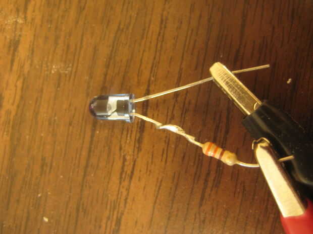 Primero usé a un partido para ver la cámara. Funcionó bien. Después usé un IR llevado ya que necesitaba algo un poco más estable (y menos burny) Puede usar una cámara digital para ver si están funcionando sus IR LED. El sensor de imagen de cámara capta la luz IR que los ojos no pueden ver. Esto es una manera tranquilizadora realmente saber si el LED está funcionando.