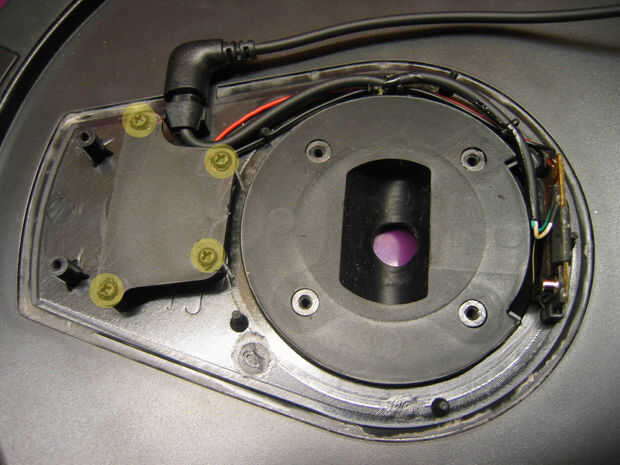 Ahora quite los cuatro tornillos (que se muestra aquí en amarillo) la tapa de la placa.