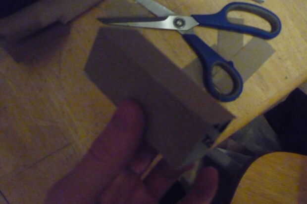 crear una forma como en el cuadro a continuación, pase el cable de usb a través del cuello y crear un agujero por la parte trasera para que pueda salir y conectar la WII