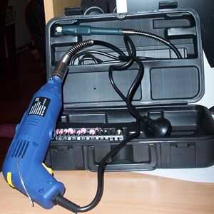 2. usando la herramienta rotatoria, hacer un orificio en el color final de la pluma, para montar el LED en (me refiero a la parte delantera de la pluma. Había removido un agujero en la perilla que sobresale de la parte frontal de estas plumas. No se sacar la perilla! Utilice la flecha en forma de herramienta desbarbadora para hacer el agujero del tamaño correcto).