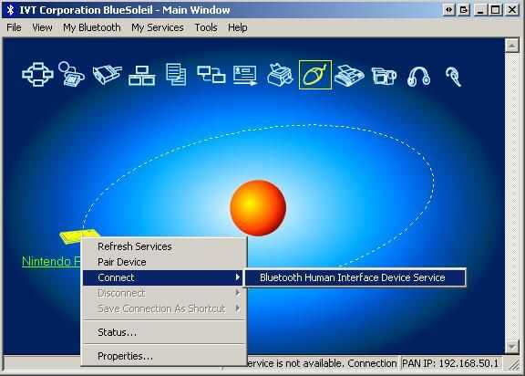 Todo lo que hacemos es iniciar el Bluetooth Software (I Prefer la vista clásica), búsqueda de nuevos dispositivos haciendo clic derecho sobre el globo naranja en medio de la pantalla y pulse juntos los botones 1 y 2 en el Wiimote. Luego debe encontrar el dispositivo. (Asegúrese de que los LEDs parpadean como muestra en la imagen).