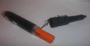 7. finalmente soldar el polo positivo (que viene del interruptor en la primera mitad de la pluma) a la otra placa que sacó de su compartimento.