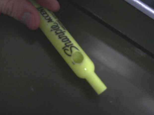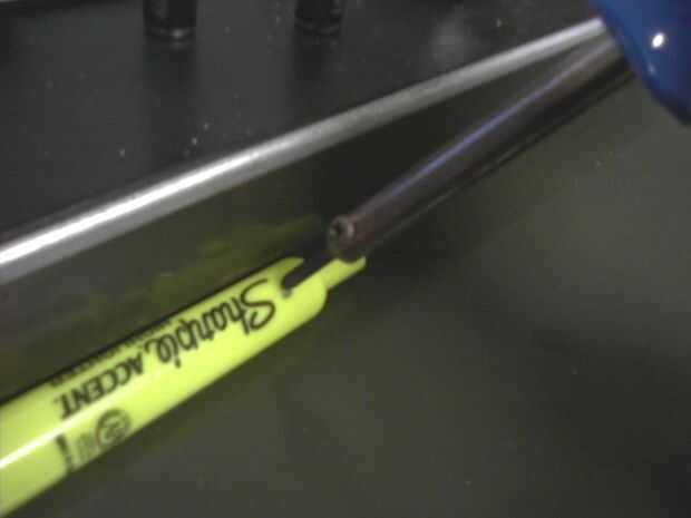 Para hacer un agujero para el interruptor utilicé un soldador barato para derretir un círculo en el lado de la pluma entonces un poco más pequeño el interruptor. Entonces, antes de que el plástico se había refrescado, empujé el interruptor en el agujero asegurándose el interruptor ajuste acurrucarse y eliminando la necesidad de pegamento o de lo contrario Coloque el interruptor más adelante.
