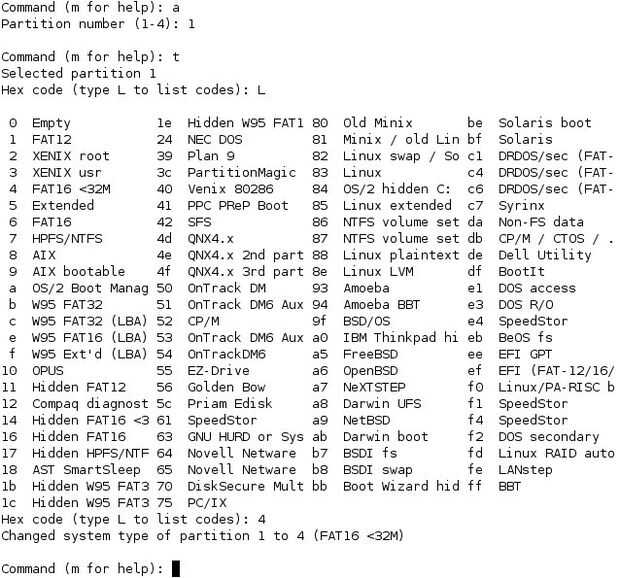Escriba fdisk /dev/XXX donde XXX es el dispositivo identificador encontramos antes. De ahora en adelante me referiré a él como XXX.