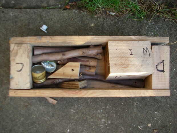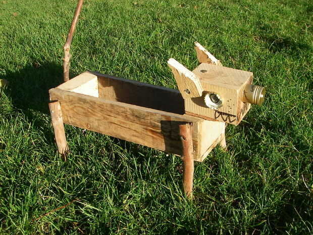 Que me aburren y cortar esquinas aún más; Utilicé algunas astillas para las piernas y la cola y llevó a cabo la caja usando los clavos de la pierna.